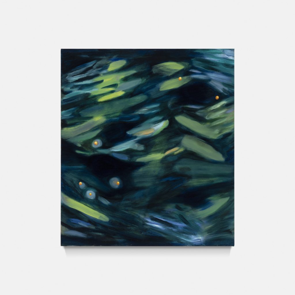 Fireflies blinking on and off, 2025, Oil and oil stick on canvas, 139 x 156 cm (Courtesy of Salto Lisboa and artist)